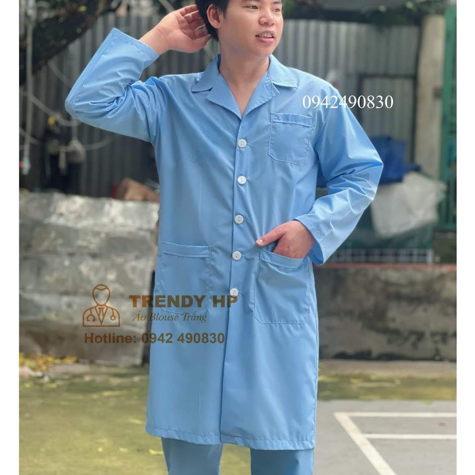 Áo công nghệ dáng dài xanh hòa bình cho nhân viên thí nghiệm, công nhân, thực phẩm, bếpÁo choàng blouse xanh