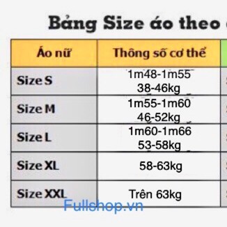 Các bạn tham khảo size áo blouse theo bảng trên hình hoặc ib shop để được tư vấn thêm
