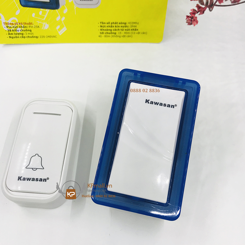 Chuông cửa không dây 1 nút nhấn 3 chuông báo không dây Kawasan DB658-2B65