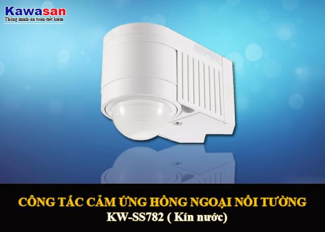 Công tắc cảm ứng hồng ngoại gắn nổi trần Kawa SS782, lắp ngoài trời kín nước lắp cảm biến thêm vào các bóng đèn quạt hút, van từ xả nước, ... . Điều chỉnh được thời gian tự tắt và chỉ cảm ứng vào ban đêm hoặc cả ngày và đêm.