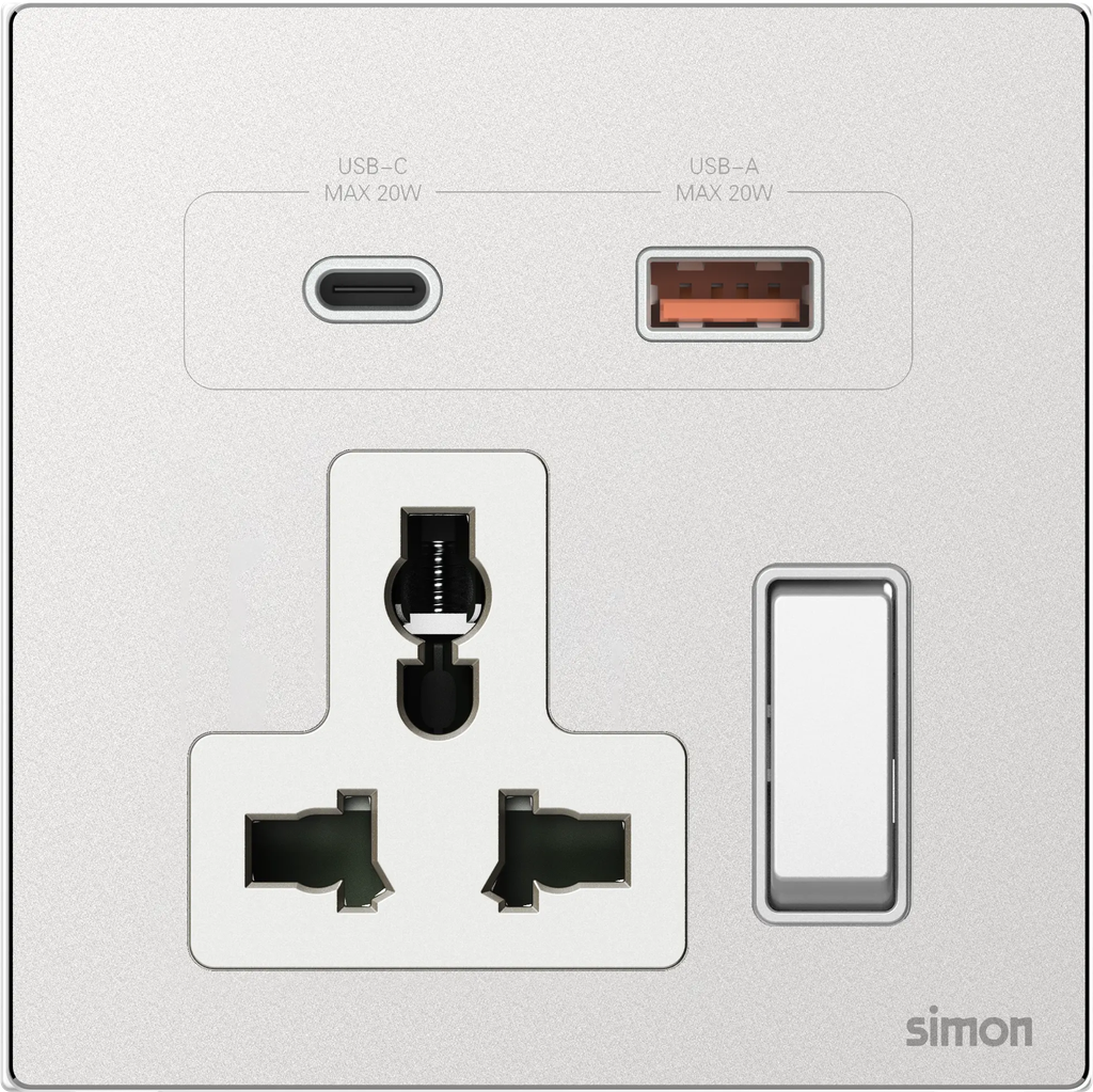 M7 Metal- Bộ ổ cắm đa năng kèm USB và A+C (Frosted Sliver) Simon M7 66E7253M-2A