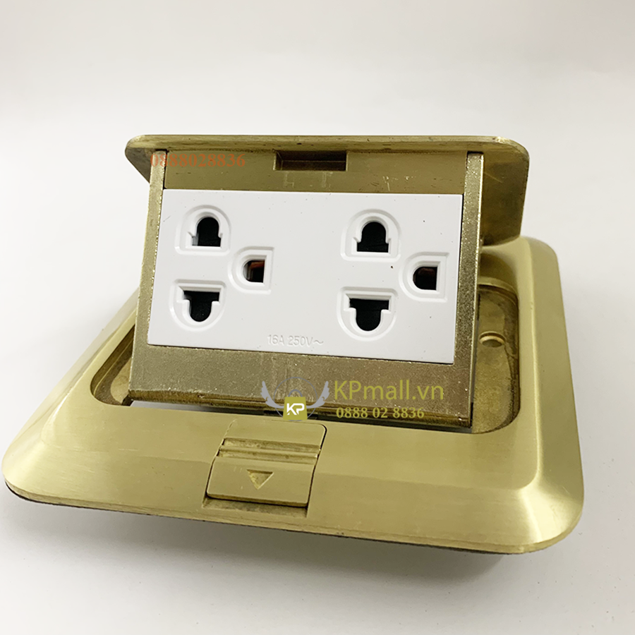 Bộ ổ cắm âm sàn gồm 2 ổ cắm 3 chấu Simon màu vàng đồng SEF3600 hoặc màu bạc SEF4600