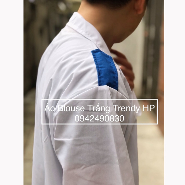 Áo choàng blouse trắng sinh viên thực tập nam nữ - áo blu trắng có cầu vai xanh cho thực tập sinh bác sĩ