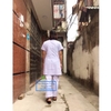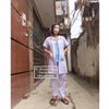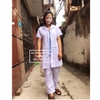 Bộ quần áo blouse kaki trắng nữ cộc tay cao cấp