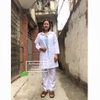 Bộ quần áo blouse trắng nữ kaki dài tay hoặc cộc tay