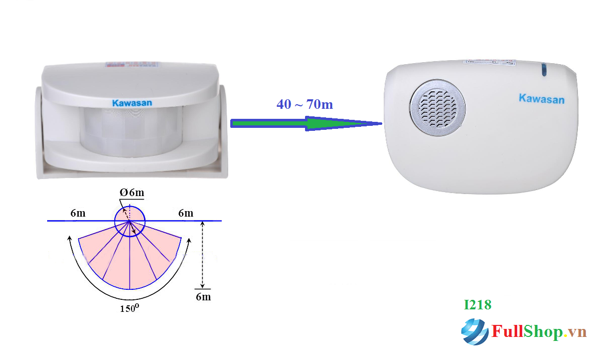 - Khoảng cách giữa đầu cảm ứng và chuông cách nhau 50m nếu không vật cản, 25m khi có vật cản.