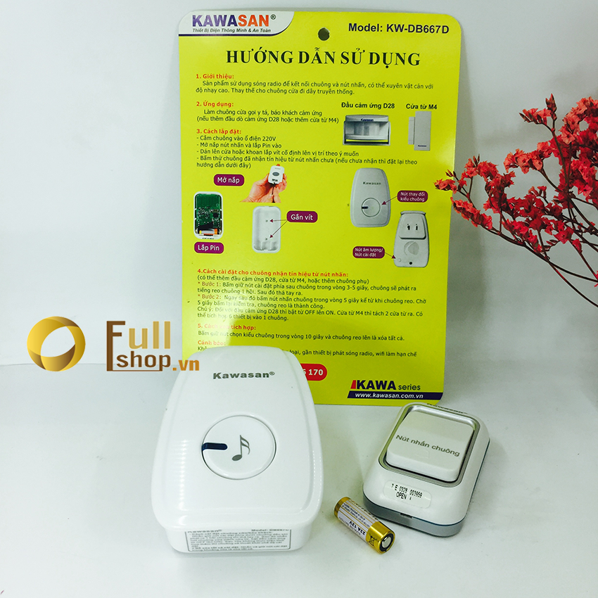 Chuông cửa không dây kawa DB667D là thiết bị chuông không dây thông minh dễ sử dụng phù hợp với mọi ngôi nhà cũng như mục đích sử dụng khác nhau. Sản phẩm sử dụng sóng radio để kết nối chuông và nút nhấn, có thể xuyên vật cản với độ nhạy cao. Thay thế cho chuông cửa đi dây truyền thống. Chuông cửa di động có thể cắm vào ổ điện vị trí phù hợp để sử dụng.