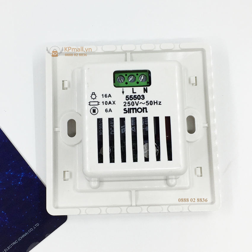 - Công tắc thẻ, AC 220V, điện trở 16 AX hoặc cảm biến 8 AX Simon 55503 được kèm theo đinh vít, giúp bạn lắp đặt một cách dễ dàng, tiện lợi