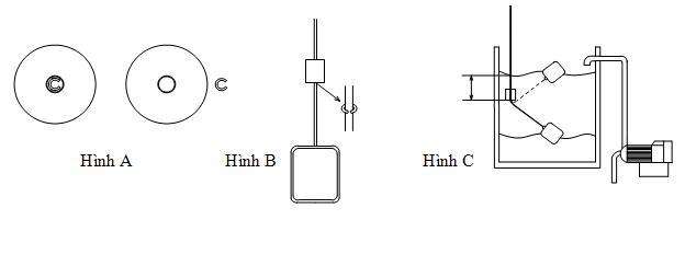 Thả phao vào bể chứa nước (quả cân cách mặt nước cao nhất < ½ độ sâu) .Hình C