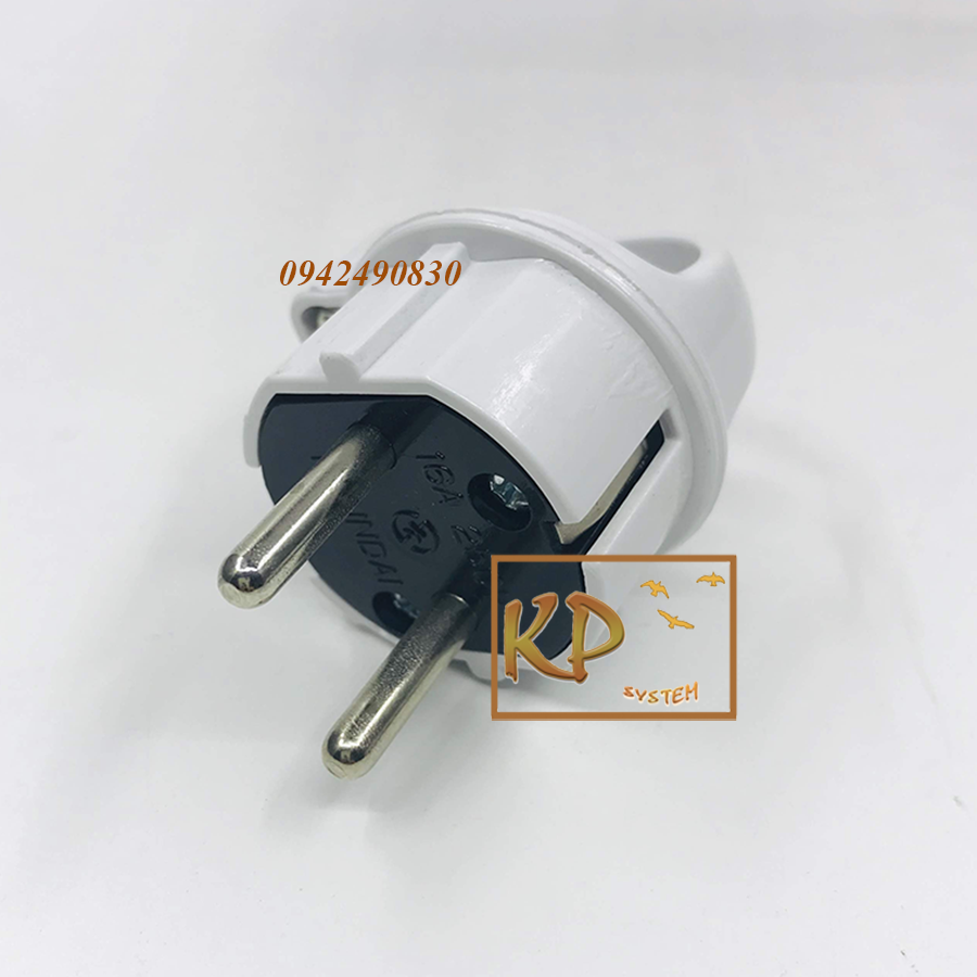 Phích cắm điện Schuko 250V - 16A thường dùng trong môi trường đòi hỏi độ an toàn cao. Phích có 2 khe tiếp địa hai bên cạnh.